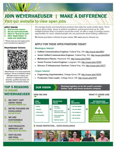 I manage Weyerhaeuser's LinkedIn account on a daily basis. I have made it my goal to tell our story in a way that resonates with people, particularly those outside of our industry. With that in mind, I try to tell stories that will appeal to those who know nothing about Weyerhaeuser. Below are some examples of the types of posts that I create.